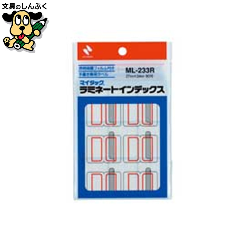 フィルム付インデックスラベル。●入数:10枚●サイズ:大●ラベル入数[片]:90●枠色:赤(R)●ラベル寸法(縦)[mm]:27●ラベル寸法(横)[mm]:34●粘着剤:アクリル系●シート数:10シート●材質:基材=上質紙、保護フィルム=ポリプロピレン