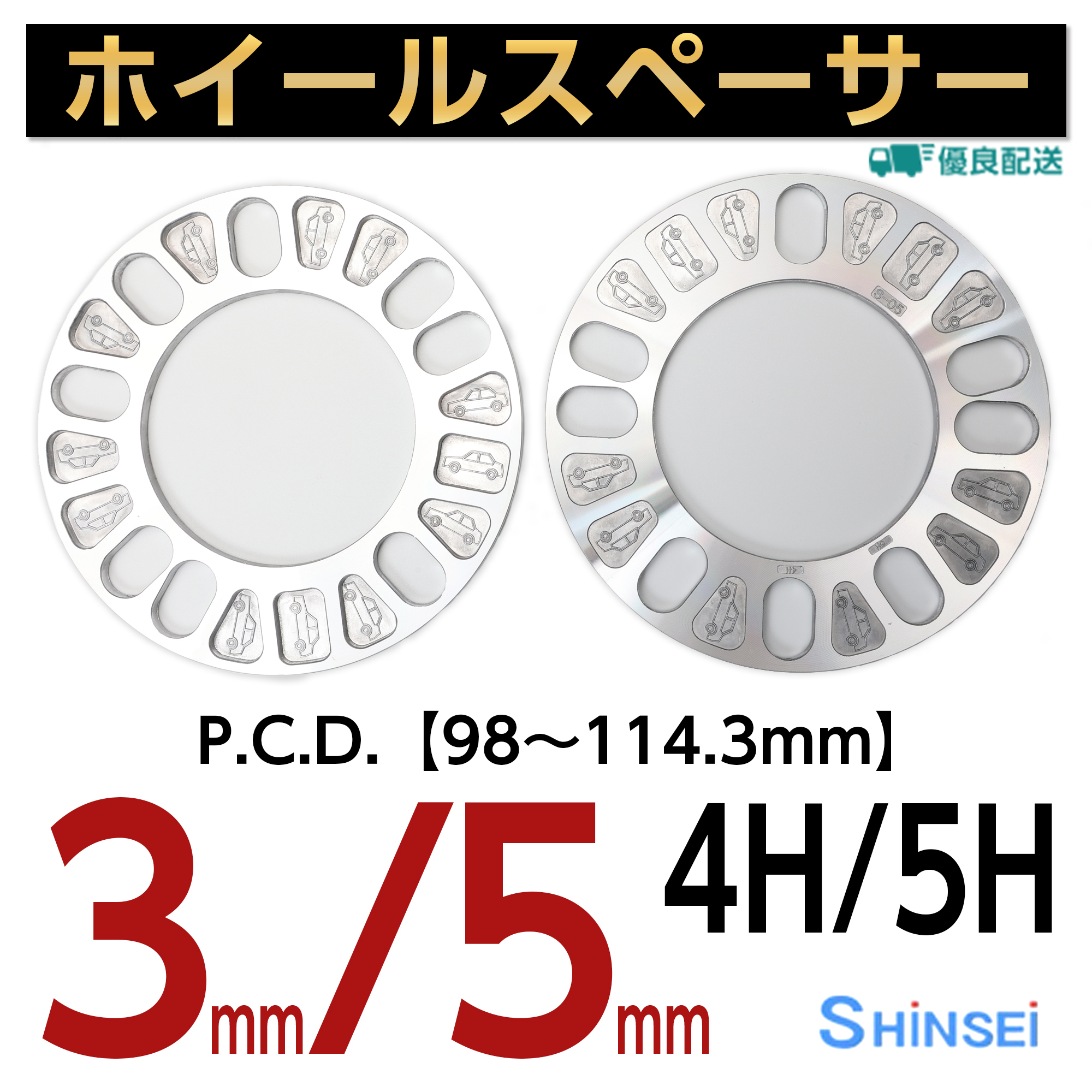 ホイールスペーサー 3mm スペーサー 4H/5H用 4穴/5穴用 PCD100〜114.3 2枚入 シンセイ SP-03