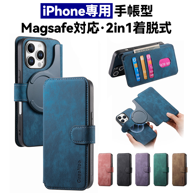 iPhone 17 16 e 手帳型 ケース Magsafe 対応 スマホケース マグネット 分離式 アイフォン 15 14 13 12 Plus Pro Max SE レザー 手帳 マグセーフ 充電 2WAY 携帯