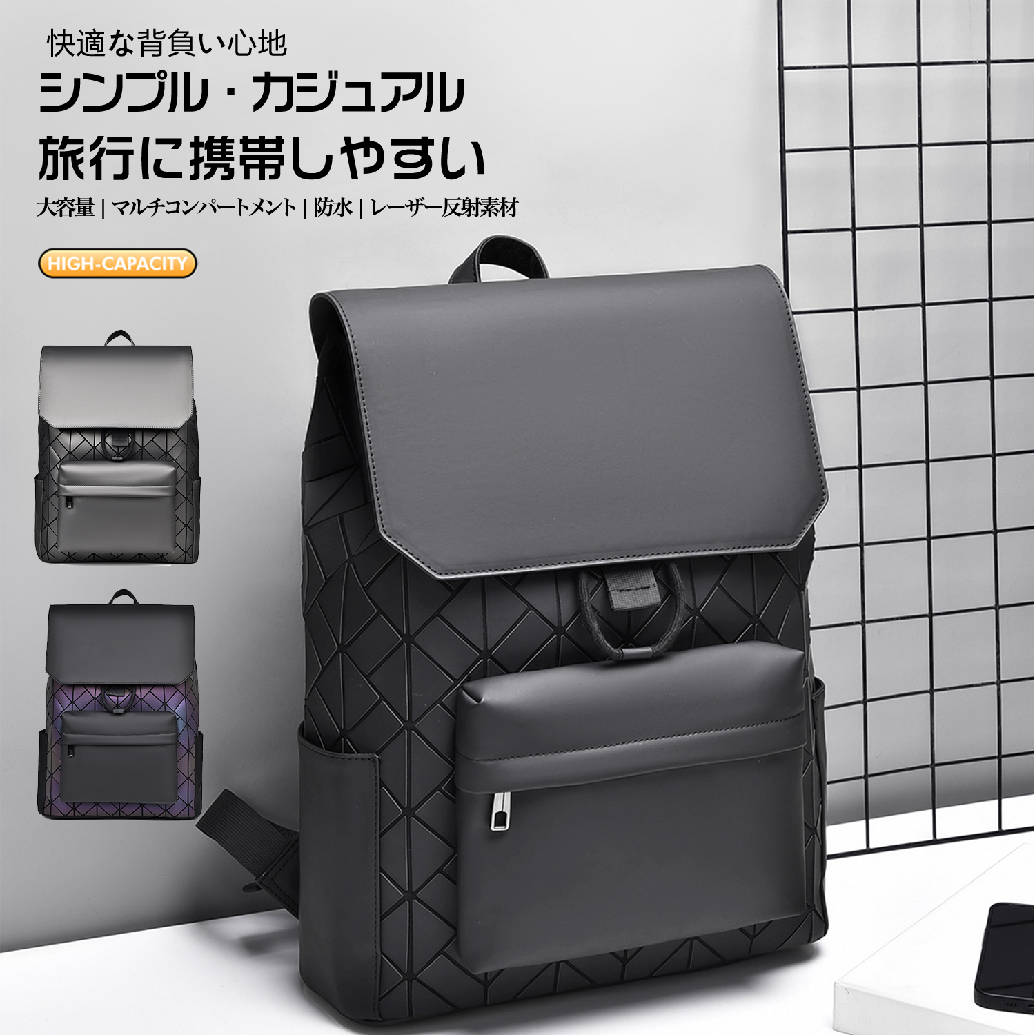 商品番号 | シンプル カジュアル リュックサック ダウンリュック バックパック スクールバッグ トラベルバッグ カラフル変色 幾何学的な菱形組合デザイン防水 大容量 外出 サイクリング 登山 旅行 通学 15.6インチPC対応 |
