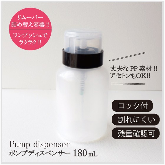 ポンプディスペンサー 180ml ネイル ロック機能付 半透明 詰め替え 除光液 リムーバー エタノール アセトン