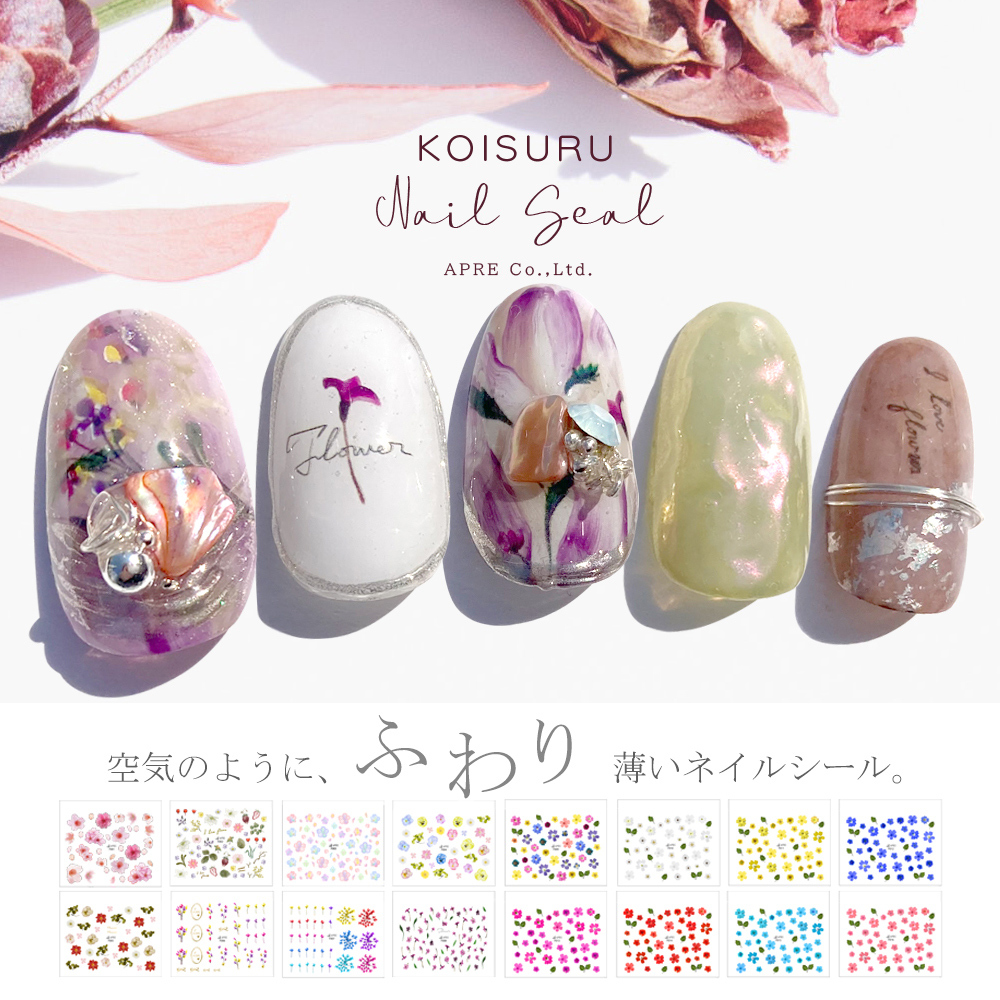 極薄タイプのフラワー柄ネイルシール16種です。