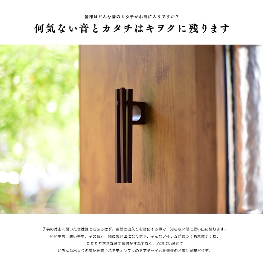 火箸風鈴のような佇まいのチャイム。アルミの無垢棒は、澄んだ抜けの良い音がします。”Bo”は、デンマーク語で「住む・暮らす」という意味もあります。