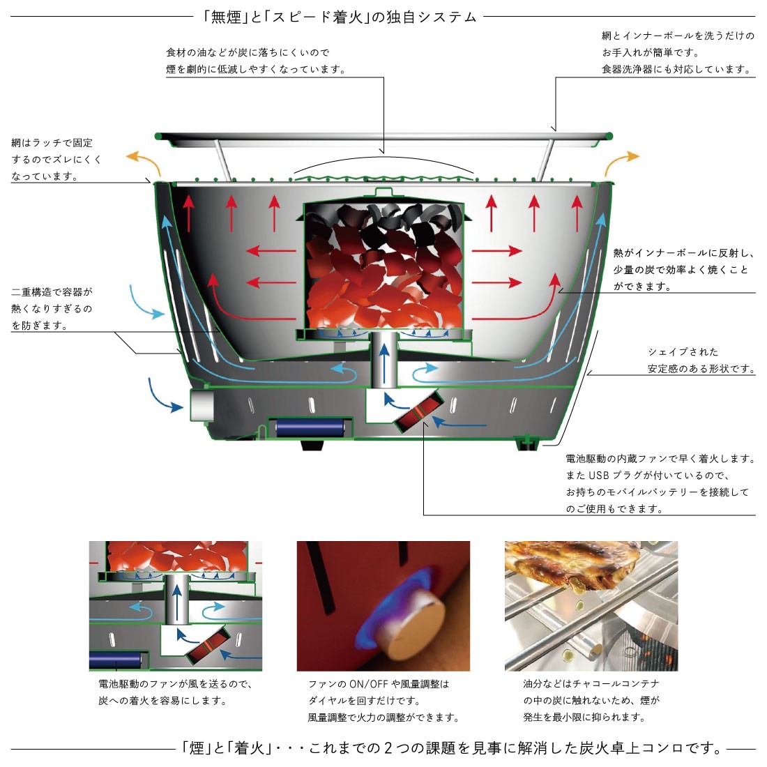 障害を見事に解消した炭火コンロです。