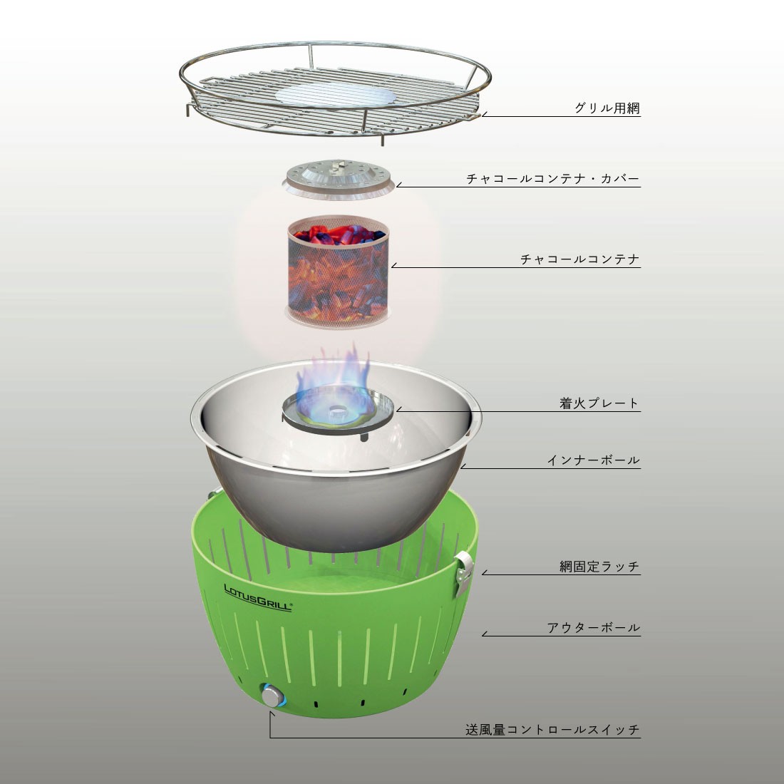 ロータスグリルは「煙」と「着火」という、