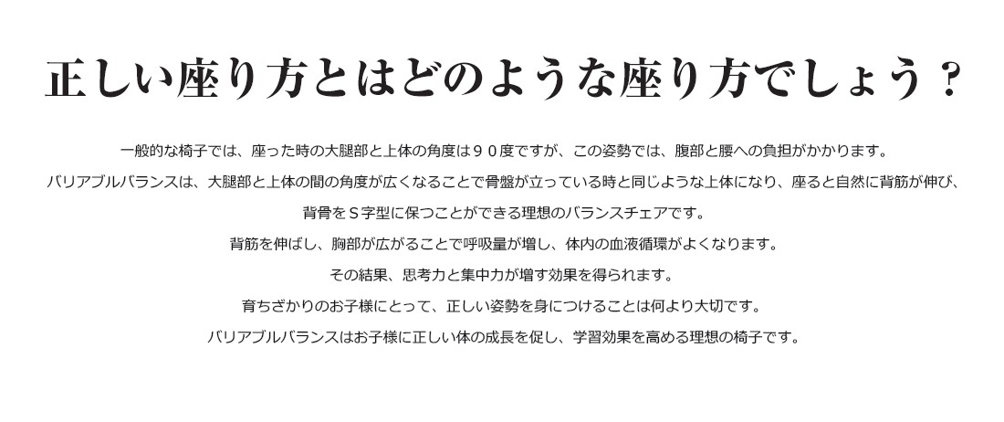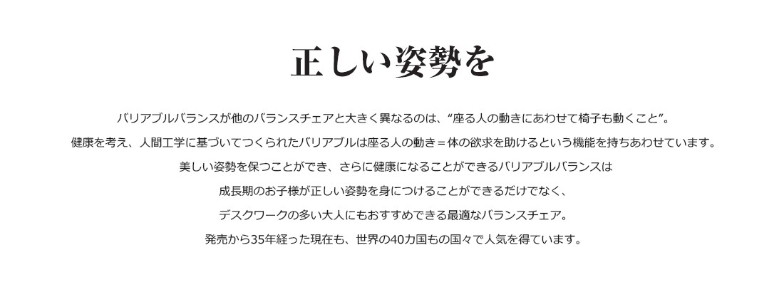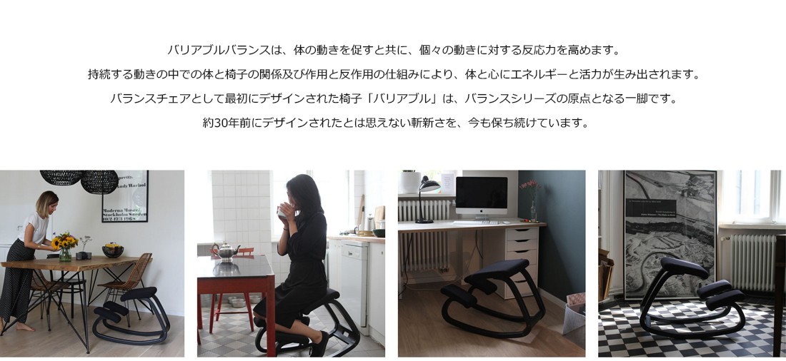 バランスチェアとして最初にデザインされた椅子「バリアブル」は、バランスシリーズの原点となる一脚です。