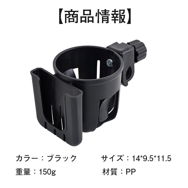 安全設計 クランプの調整スイッチを回すことにより、取り付け径の調整ができます。クリップ式で自転車を傷つけません。お子さまがはずしにくいベビーカー専用、安全設計のカップホルダーです。