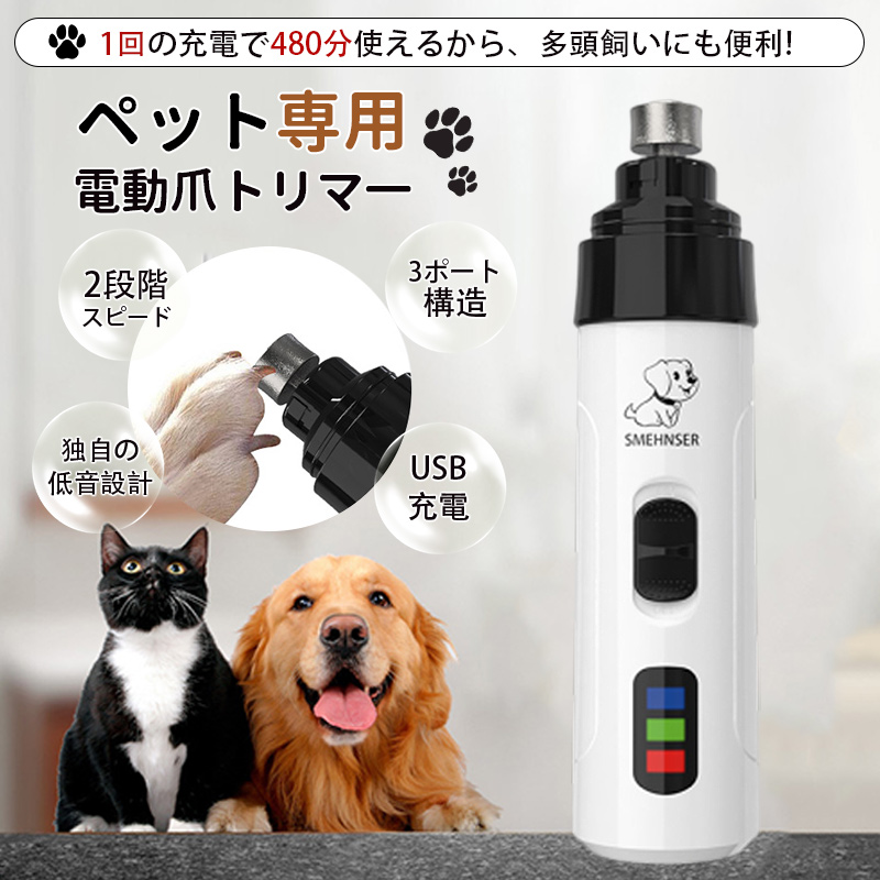 【関連キーワード】ペット用爪切り 電動 爪やすり 電動爪トリマー ペット 犬爪切り 猫爪切り 猫爪やすり 爪とぎ 爪研ぎ器 犬深爪 USB充電式 猫用 犬用 2段階調整 静音 犬猫兼用 高速回転 便利