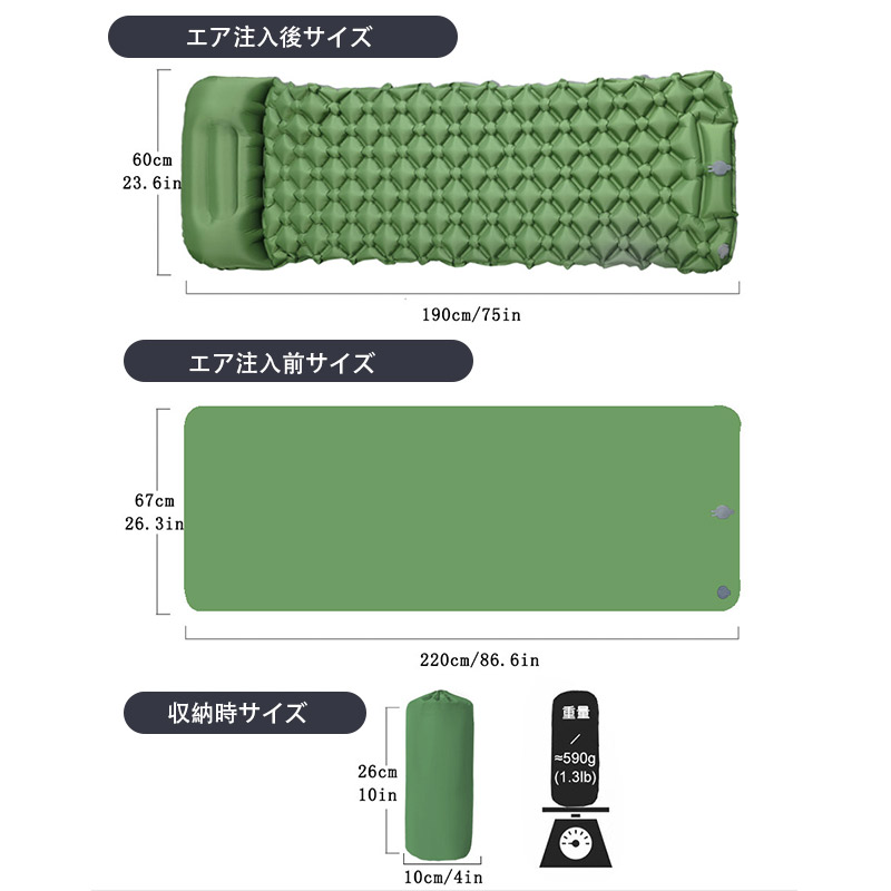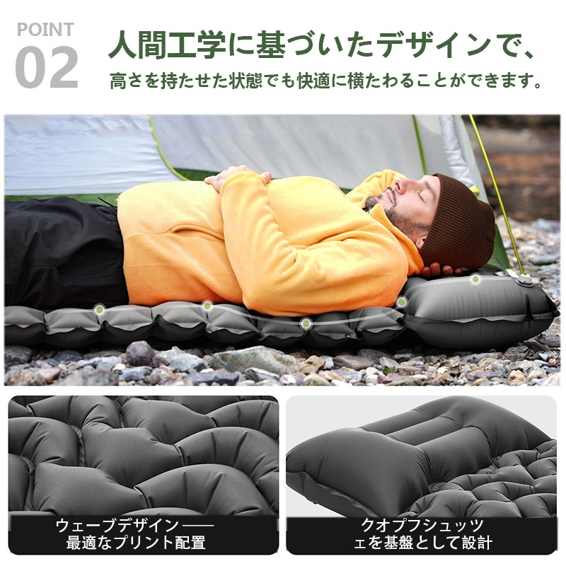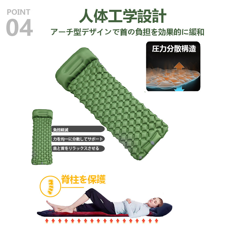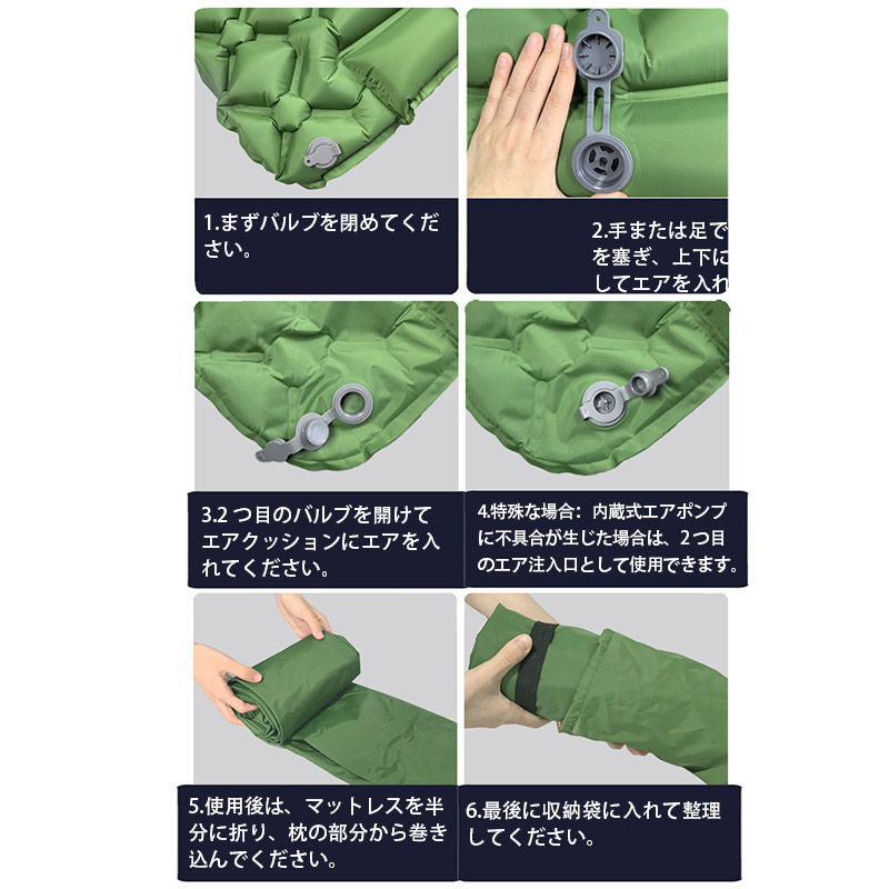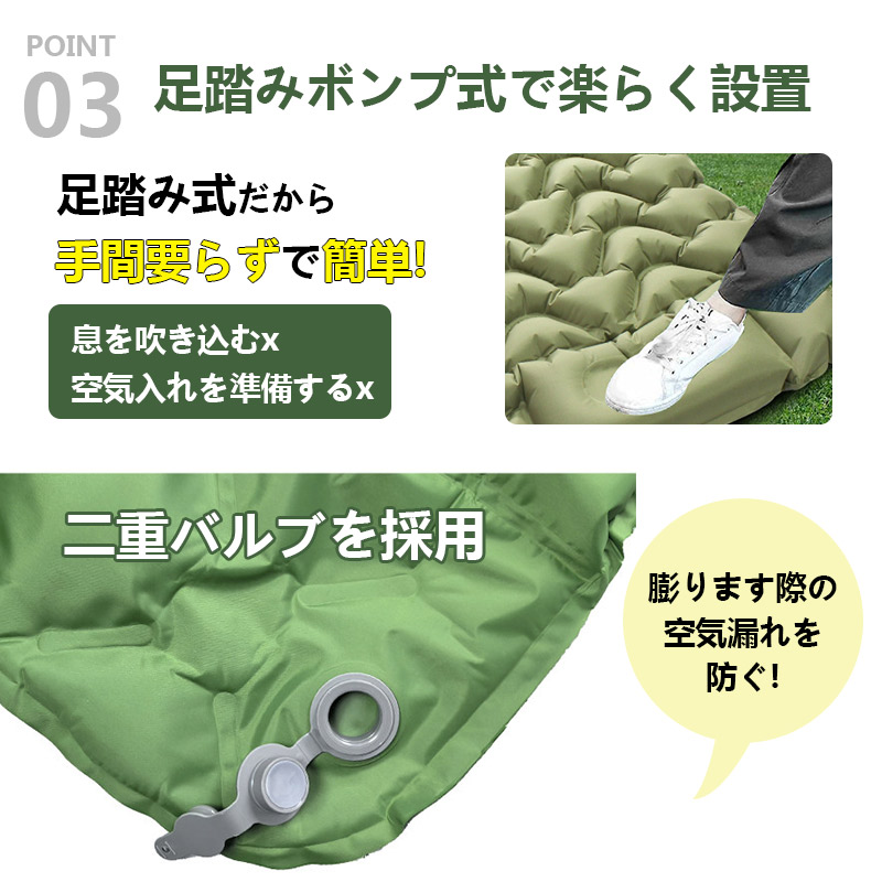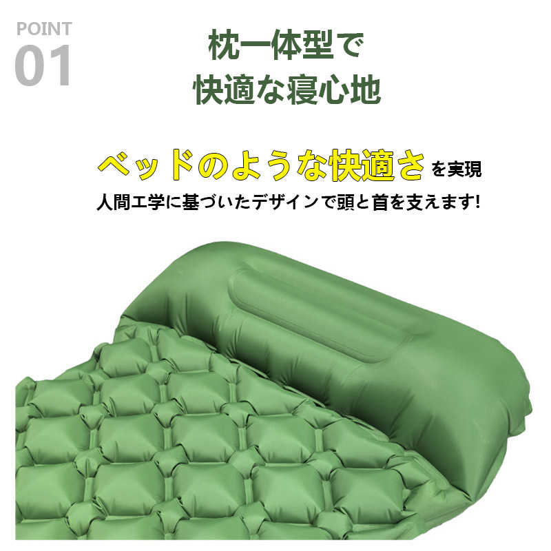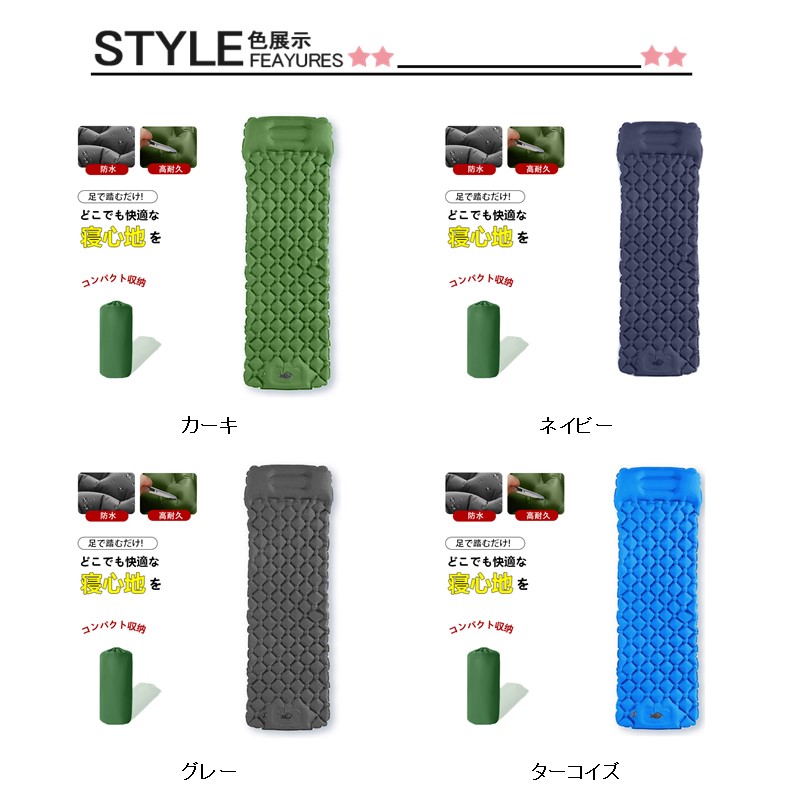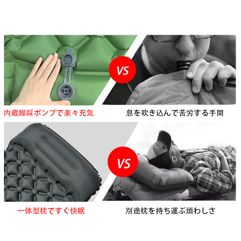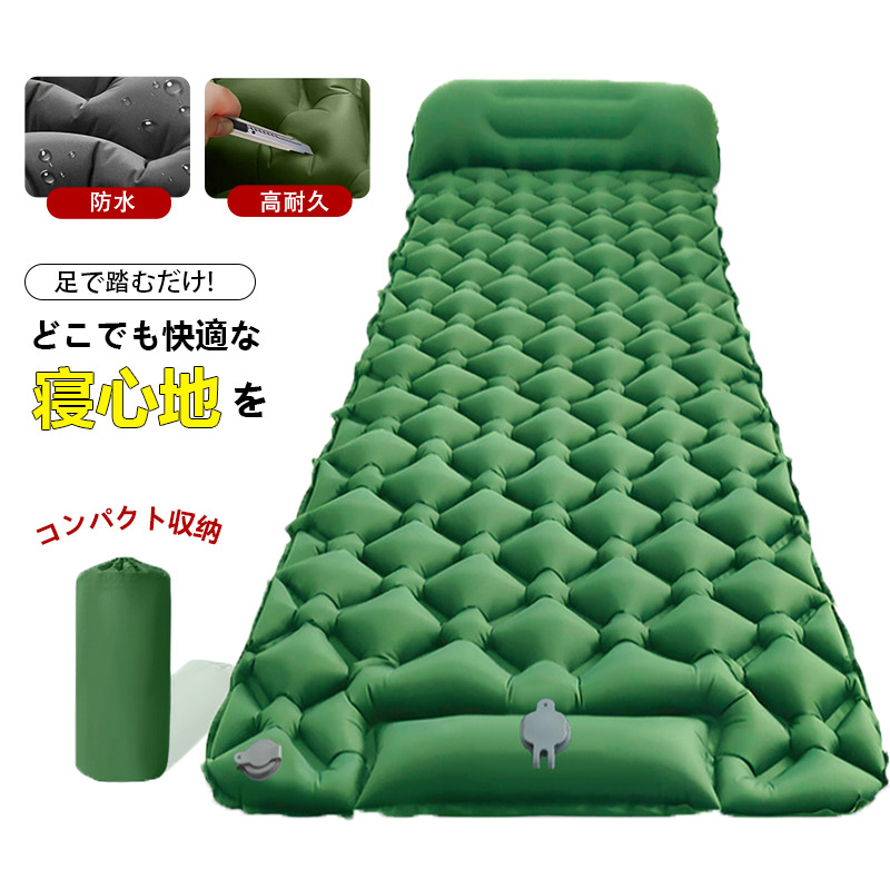 【キーワード】エアーマット キャンプ 車中泊 足踏み式 キャンプマット 厚手 軽量 コンパクト 防水 キャンプ用品 持ち運び 収納袋付 枕付き マットレス 災害