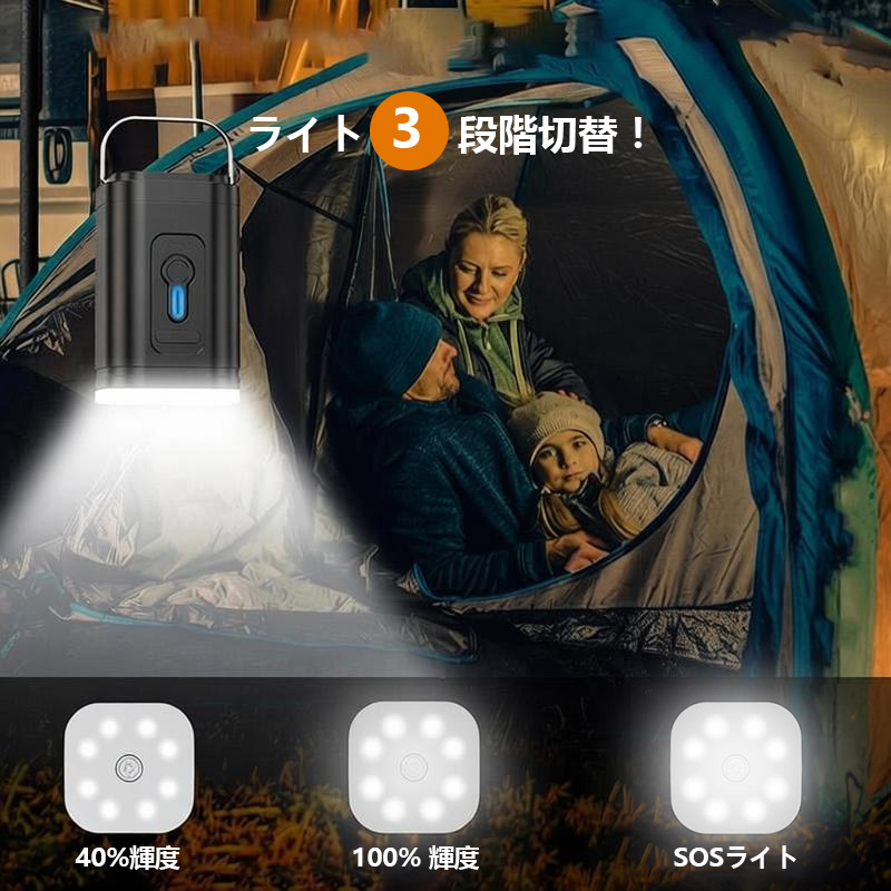 - 照明3段階調光:夜間アウトドアや緊急時に活用可能,明るさを自由調整。