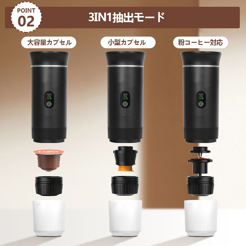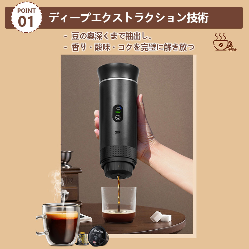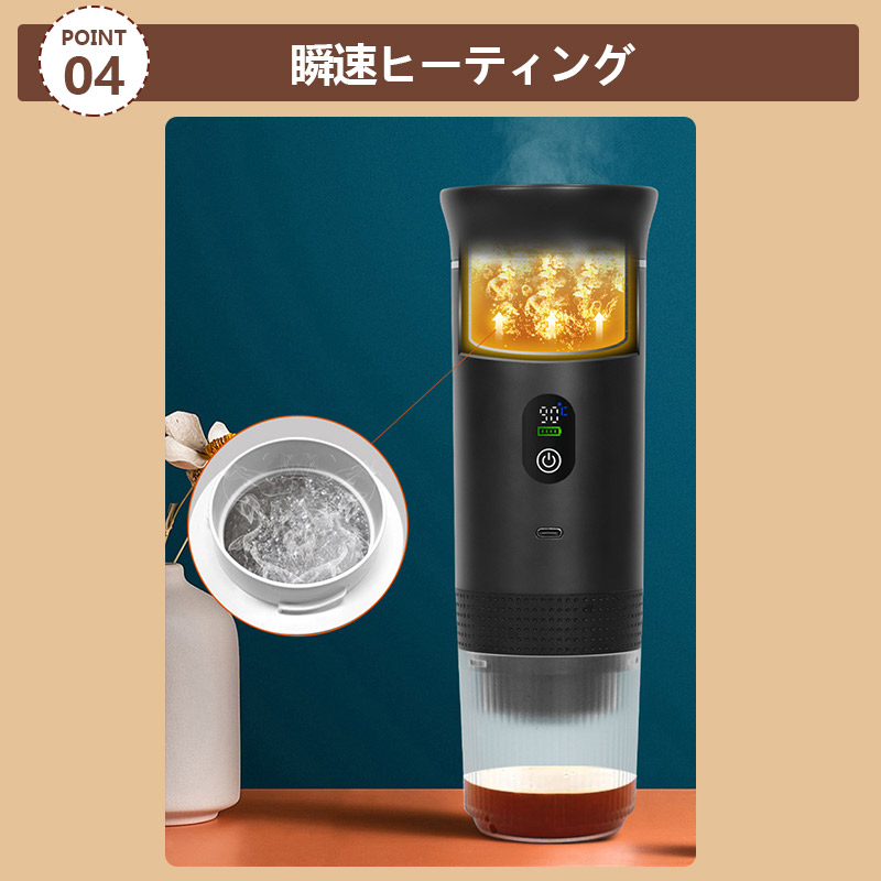 【キーワード】コーヒーマシン 自動 ミニ 車載ポータブル コーヒーマシン USB充電 軽量 携帯便利 効率的 使いやすい 家庭 オフィス アウトドア キャンプ