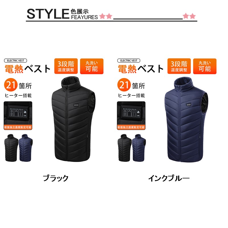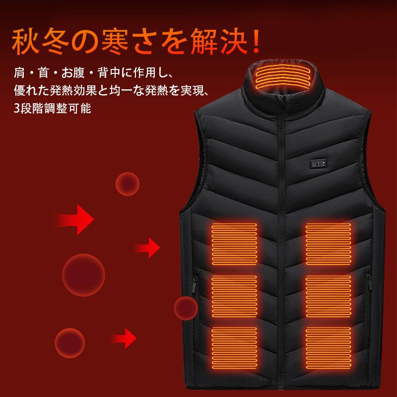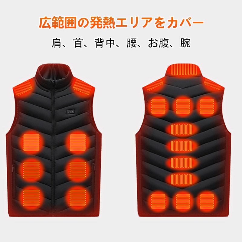 【キーワード】ベスト 発熱ベスト 電熱ベスト USB給電 3段階 防寒 9 15 21エリア発熱 メンズ レディース 男女兼用 電熱 発熱 水洗い可能 アウトドア