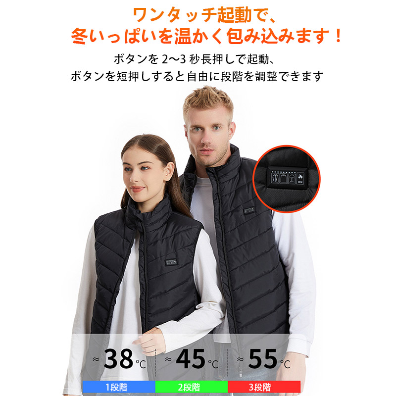 ベスト 発熱ベスト 電熱ベスト USB給電 3段階 防寒 9 15 21エリア発熱 メンズ レディース 男女兼用 電熱 発熱 水洗い可能 アウトドア