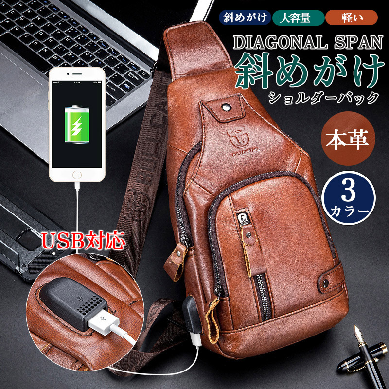 本革 ショルダー ボディ バッグ バッグ ショルダー メンズ 牛革 レザー バック ワンショルダー 斜めがけ 肩掛け USB対応 父の日 ホワイトデー爆買