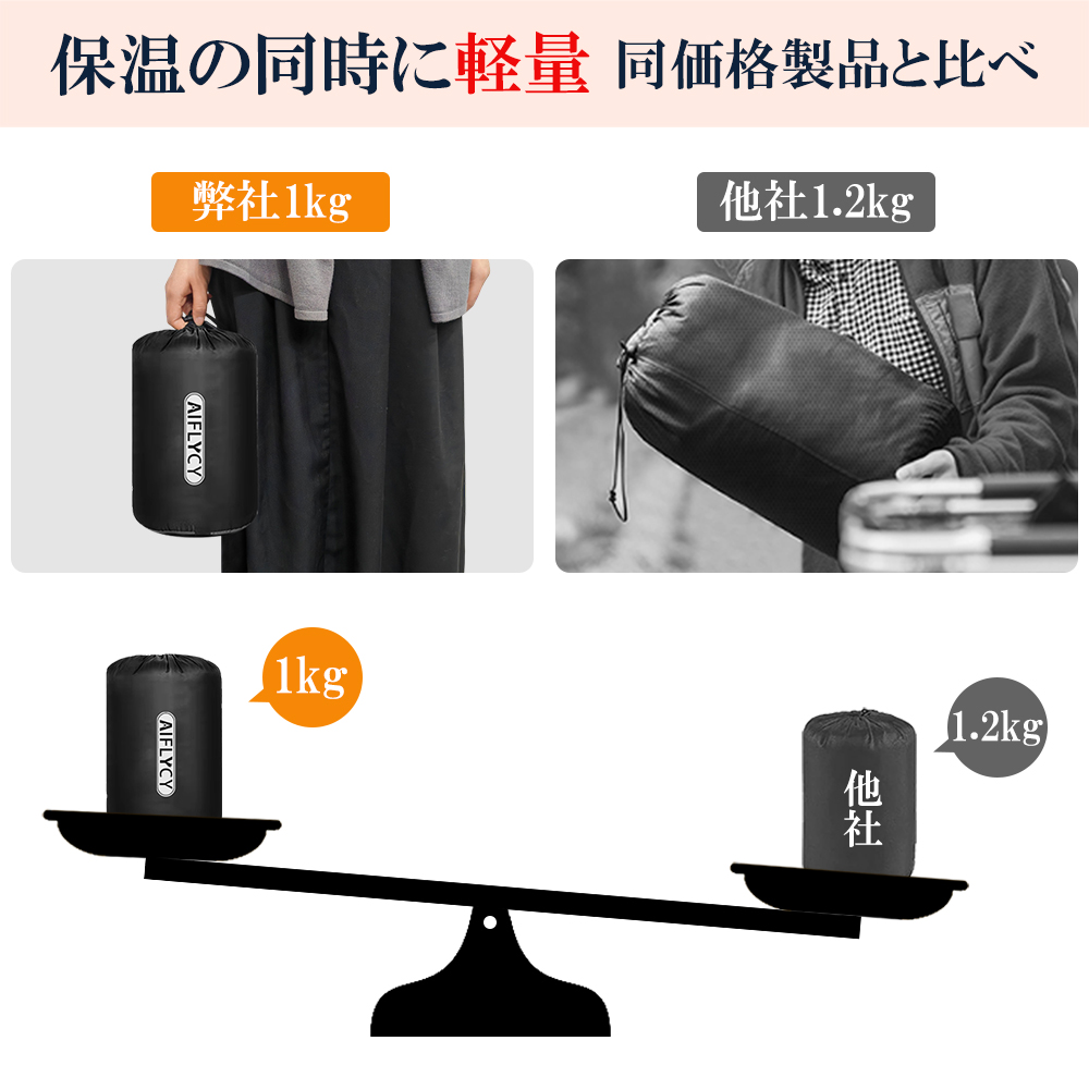 注意:寝袋の耐寒範囲は、寝袋の重量と個人の耐寒によって異なります。