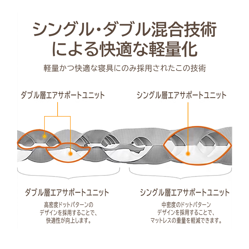 2024年新型スイッチは、密着度が高く、空気漏れがしません。10CMと7CMの厚みは高い緩衝性能を持ち、荷重が一箇所に集中した時に起こりやすい底付き感を防ぎます。また、車内の段差や凹凸のある場所でのお悩みを解決し、快適な眠りを確保します。