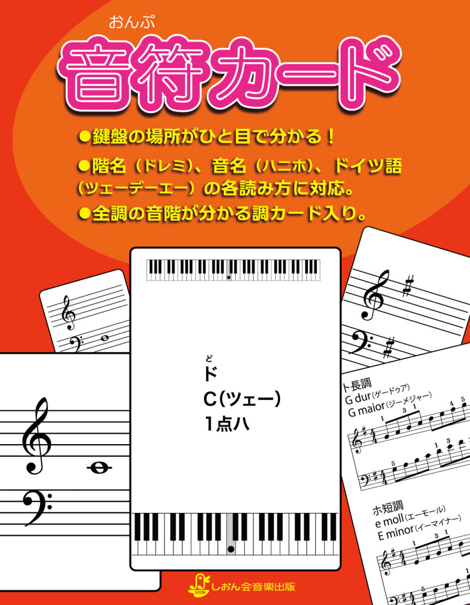 【内容】ト音記号はイ〜3点トまで、ヘ音記号はホ〜下1点い まで。#、♭も充実の88枚。付録として、全調の音階(長音階、和声的短音階)が指番号付きで覚えられる「調カード」12枚。