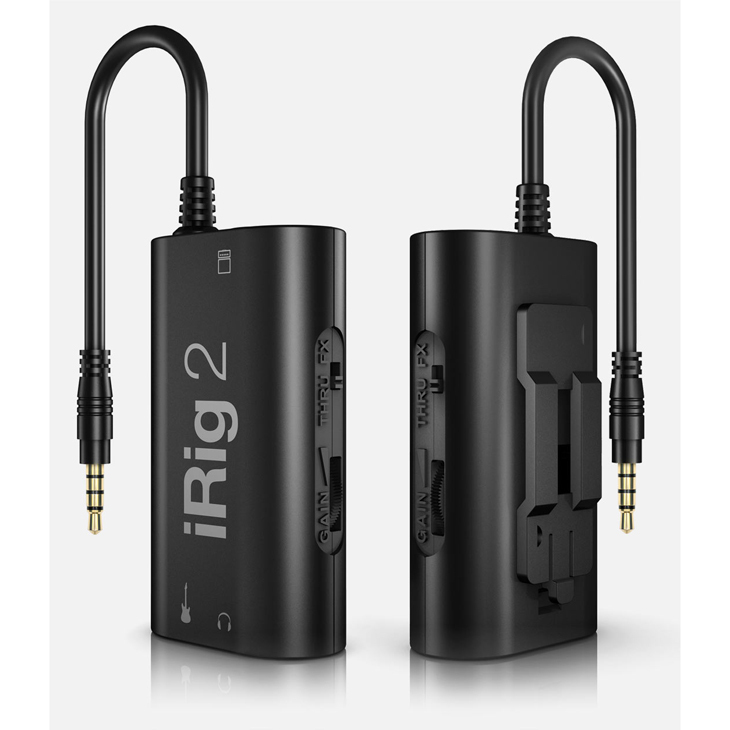 iRig 2にはギター、ベースを接続する楽器入力端子、iPhone、iPad、iPod touch、Mac、Android機器に接続する4極ミニプラグ、ヘッドフォン・アウトに加え、アンプ接続用の標準アウト端子、入力ゲイン調整ダイアルが装備され、練習、レコーディングからライブまで、より幅広い楽器や使い方に対応しま