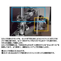 連結部のLロッドは無段階の角度調整が可能なオムニボールを採用しており、バスドラムヘッド角度やセッティングに影響されることなくハイハット・シンバルの角度の微調整を可能にします。
