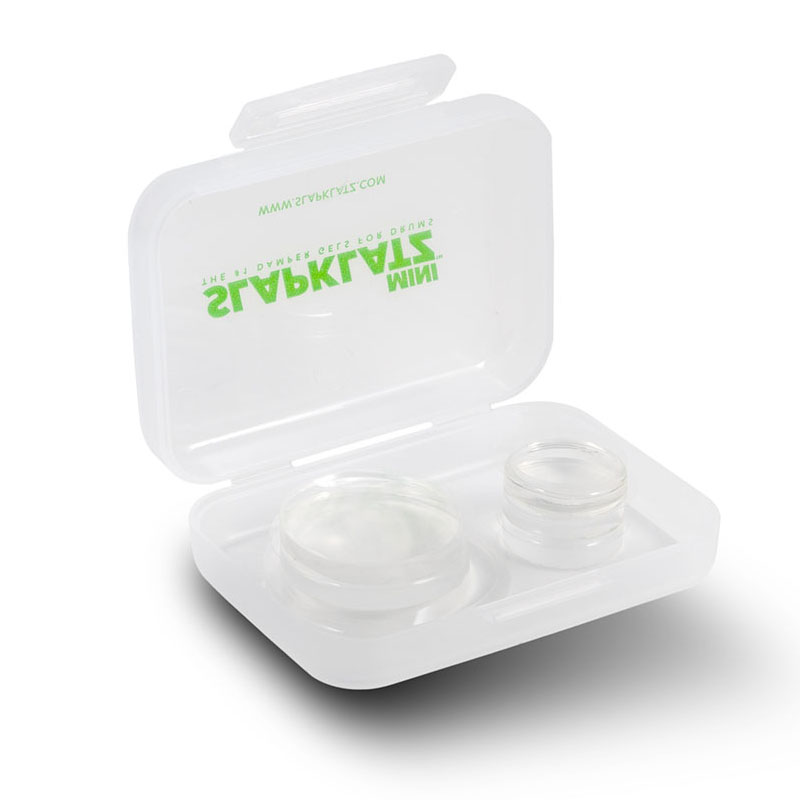 スタジオやライブハウスでドラムを借りるとき、 いつものセットで新しい曲を叩くときなど、トーンやサスティーンを調節したい時におすすめなミュート、 それがこの“SlapKlatz(スラップクラッツ)”です。使い方は至って簡単、ミュートしたい場所にスラップクラッツをペタッと貼り付けるだけ。ジェル自体の粘着力が高いので、スネアやタムタムの打面はもちろん、シェルのボトム側やシンバルの裏など考えうる殆どの場所に貼り付ける事が可能です。ミュートが不要になった時は、簡単に剥がすことができ、しかもガムテープのように跡が残ることもありません。スラップクラッツは強度も充分で、緩衝材としても使う事が可能です。セッティングによってはドラムのシェルに他のハードウェアが接近する事もありますが、そのような箇所にスラップクラッツを貼っておけば、接触してしまった時に余計な雑音が出てしまうのを防ぐだけでなく、大切なドラムシェルに傷も付かず、安心して叩けます。クリアタイプを貼れば見た目も気になりません。付け剥がしを繰り返したり、汚れてくると粘着力は次第に落ちてきますが、水洗いする事で新品時の粘着力が蘇ります。