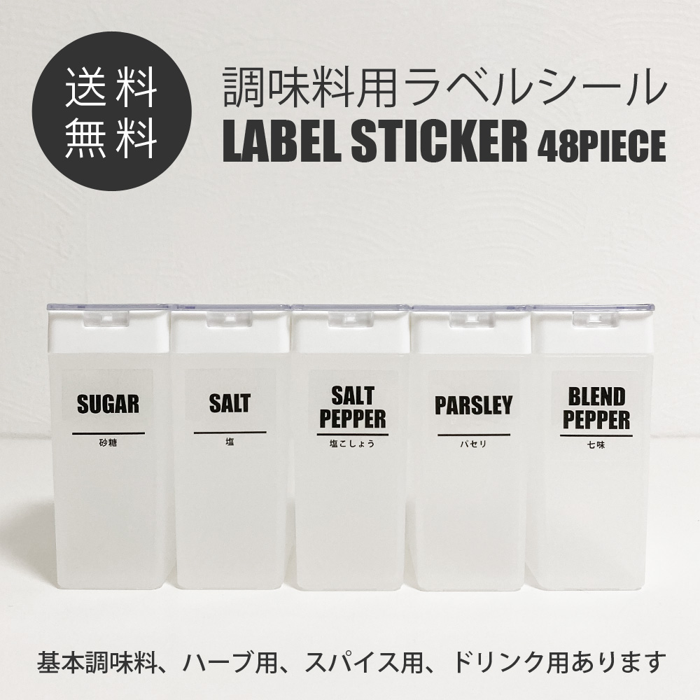 調味料や香辛料、常備食品用のラベルシールになっています。
