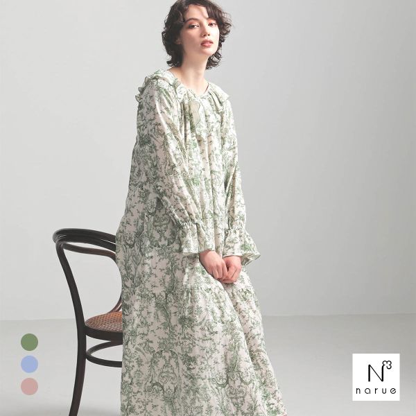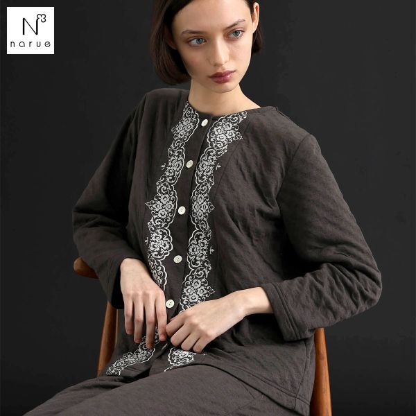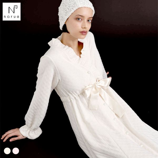 ナルエー パジャマ 裏綿接結 綿入り ブドォワールローブ ワンピース ガウン ルームウェア 長袖 moontan by Narue Luxe