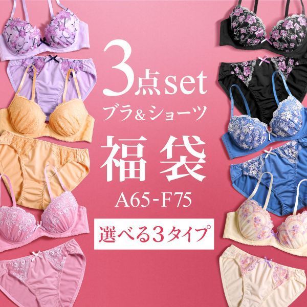 ブラジャー ショーツ 3点セット 福袋 選べる5タイプ おまかせ 刺繍 レース おしゃれ シンプル ABCDEF 大きいサイズ
