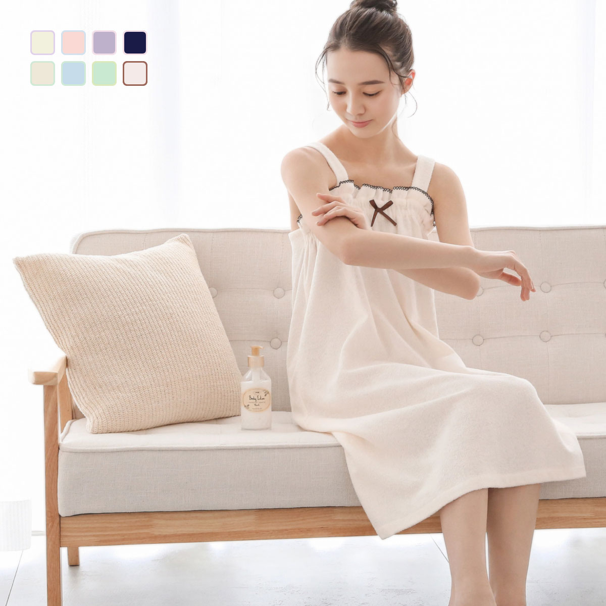 キュートにくつろげる人気のバスラップ。お風呂上がりにさっとかぶって、ほてりを冷ましながらボディケアもらくちん♪