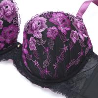 エレガント 脇肉を谷間に変える脇高ブラ フラワー刺繍レース ブラセット CDEF80-95 グラマー ブラジャー ショーツ セット Elegante