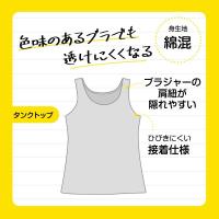 色味のあるブラでも透けにくいカラーを採用しています。ブラジャーの肩ひもが隠れやすいスペックになっています。接着仕様になっているので、響きにくいのが特徴です。