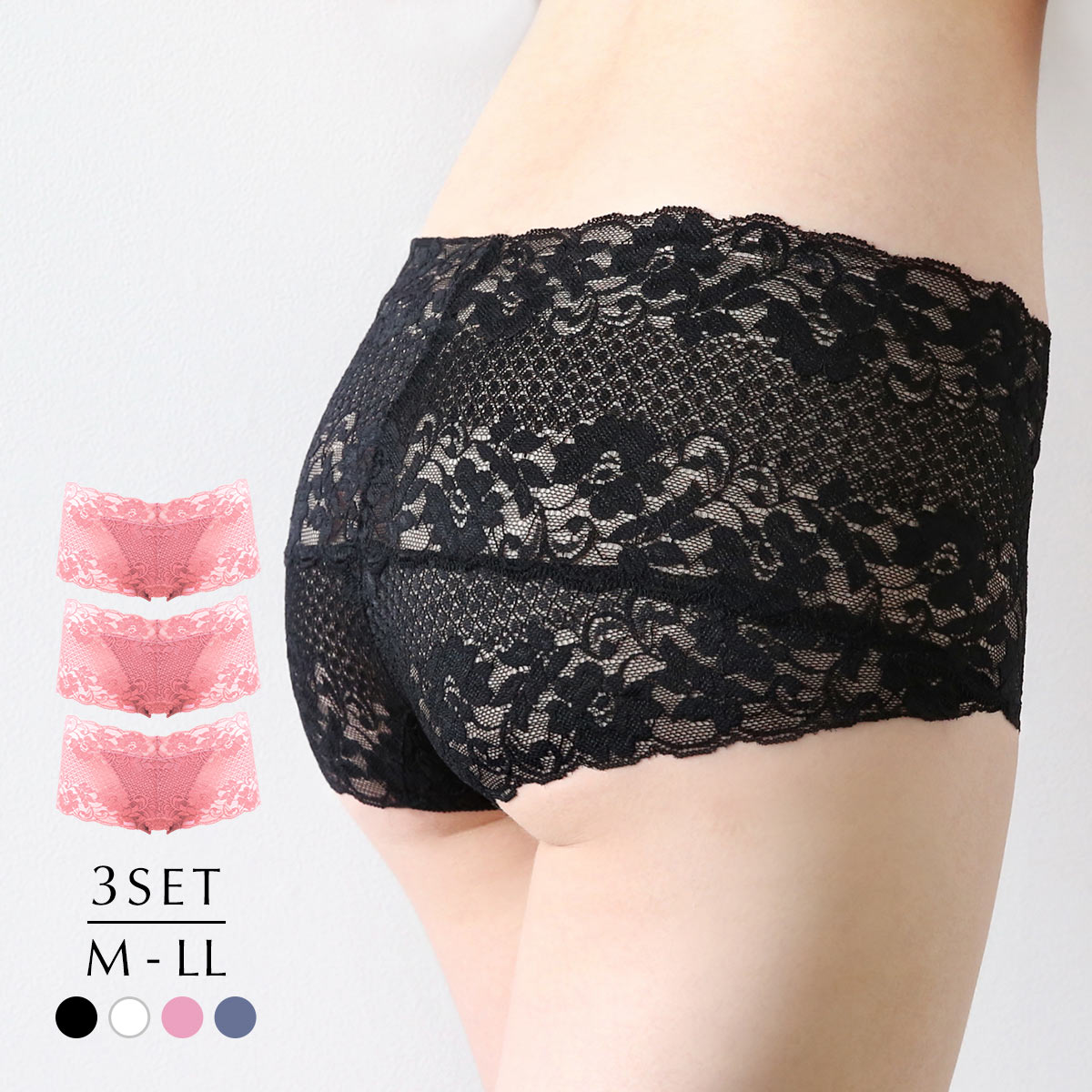 サニタリーショーツ 3枚セット 総レース 羽根付き対応 生理用 ひびきにくい 柔らか プチプラ ストレッチ ローライズ ジョリーエマ