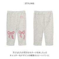 こちらは、ひざの部分に3種類のモチーフをアップリケで表現した、肌触りの良いリブ素材の細身ストレートパンツです。