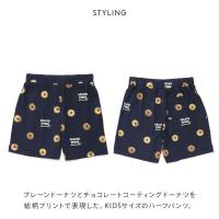 プレーンドーナツとチョコレートコーティングドーナツを総柄プリントで表現した、POPでカジュアルなKIDSサイズのハーフパンツ。