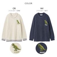 胸元にダイナソーとロゴのさがら刺繍でデザインを添えた、キャッチーな可愛さのあるプルオーバー。背中にもロゴがあしらわれています。