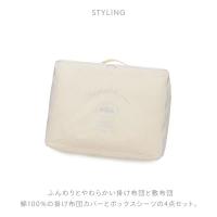 ふんわりとやわらかい掛け布団と敷布団、さらにコットン100%の掛け布団カバーとボックスシーツに、専用の収納袋がついています。