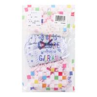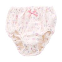 お花畑のようなフラワープリントがかわいい女児ショーツ3枚セット。フロントにワンポイトのリボンがついており、前後ろが分かりやすくなっています。ウエスト・足口ともに、ゴムが直接お肌にあたらないインゴム仕様。内側には名前が記入できるネームタグ付きです。