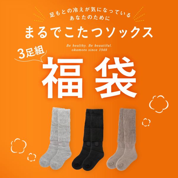 まるでこたつソックス 福袋 三足組 セット 冷えとり靴下 レディース あったか 靴下 靴下サプリ 岡本 ハイソックス 冷え取り 発熱 23cm 24cm 25cm 再梱包 ST01