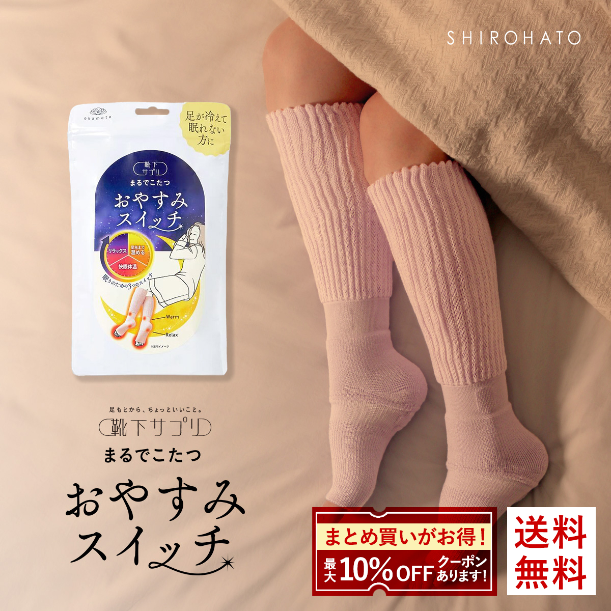 靴下サプリ おやすみスイッチ まるでこたつ 足先カットソックス レディース あったか靴下 ルームソックス レッグウォーマー 22-25cm