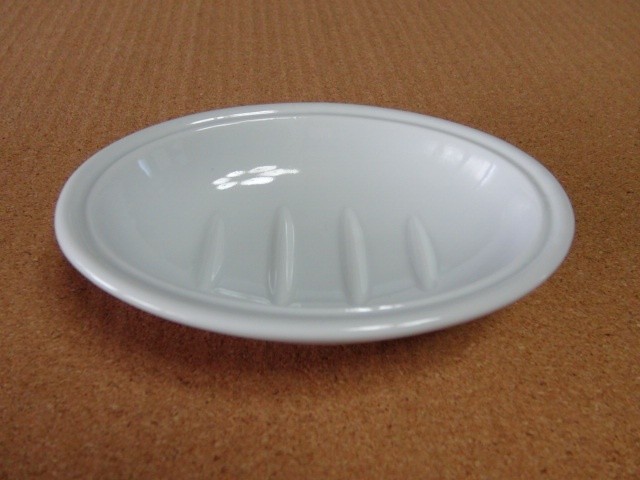 楕円石鹸入れ(スジ入り) ソープディッシュ 石鹸置き 白 陶器 アウトレット ポーセリンアート ポーセラーツ 絵付け