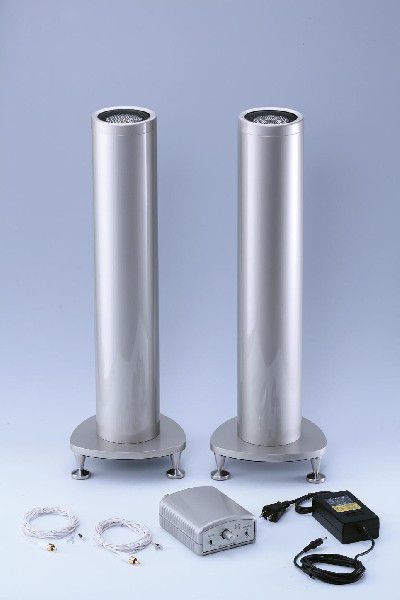 スピーカー本体/アルミパイプφ100mm(ウレタン塗装)、ユニット:8cmフルレンジ、外形寸法:W181×H576mm、重量:3.5kg/本、カラー:クリアシルバー・鉄瓶風ブラック、付属品:スピーカーケーブル2.5m×2本
