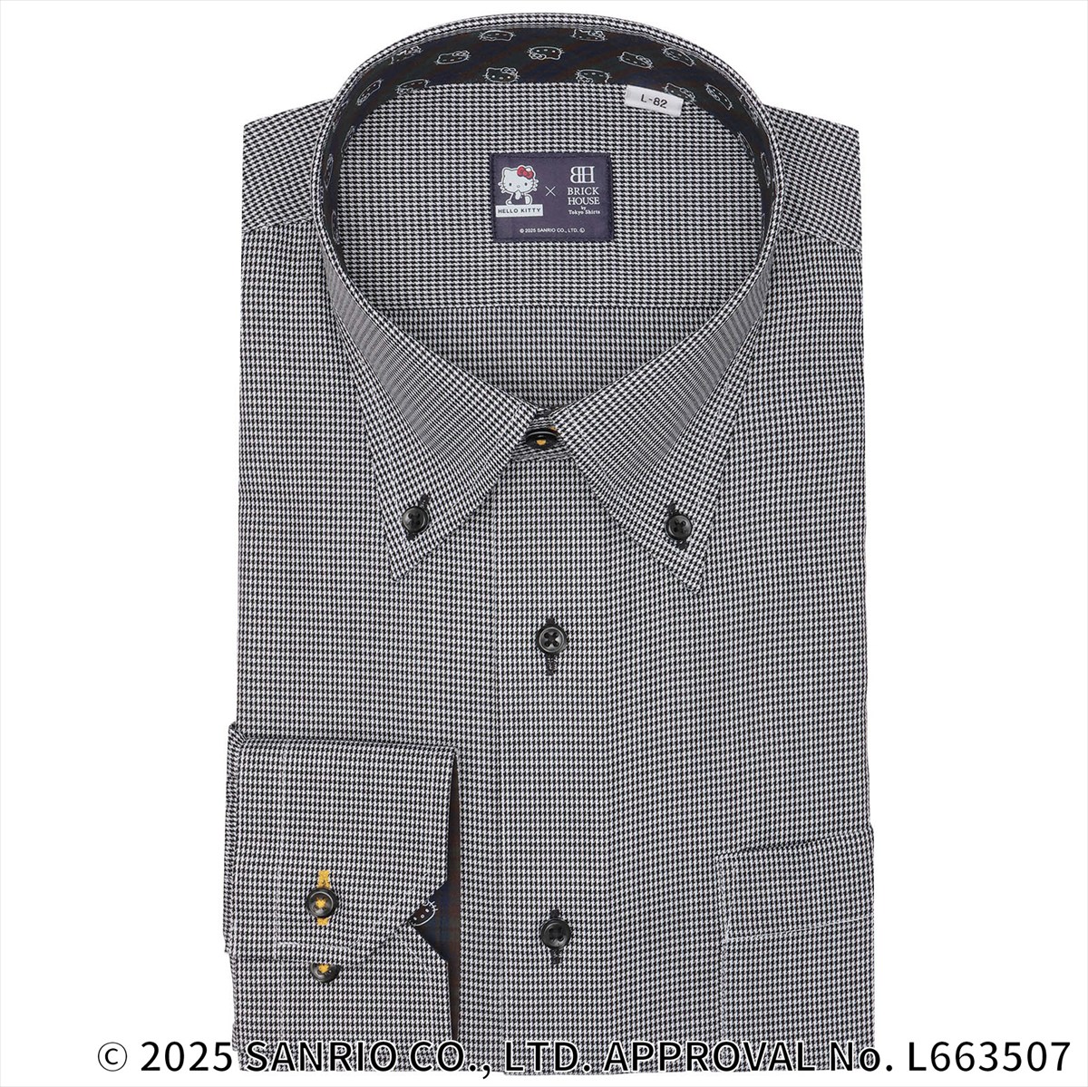 | 仕様 | カフリンクス使用可能な兼用カフス (アジャストボタン) 角切カフス デザイン:胸ポケット(左胸)付き(ホームベース型) 背タック・背ダーツなし 前立:裏前立仕様 台衿内側・カフス裏側:別布仕様 |