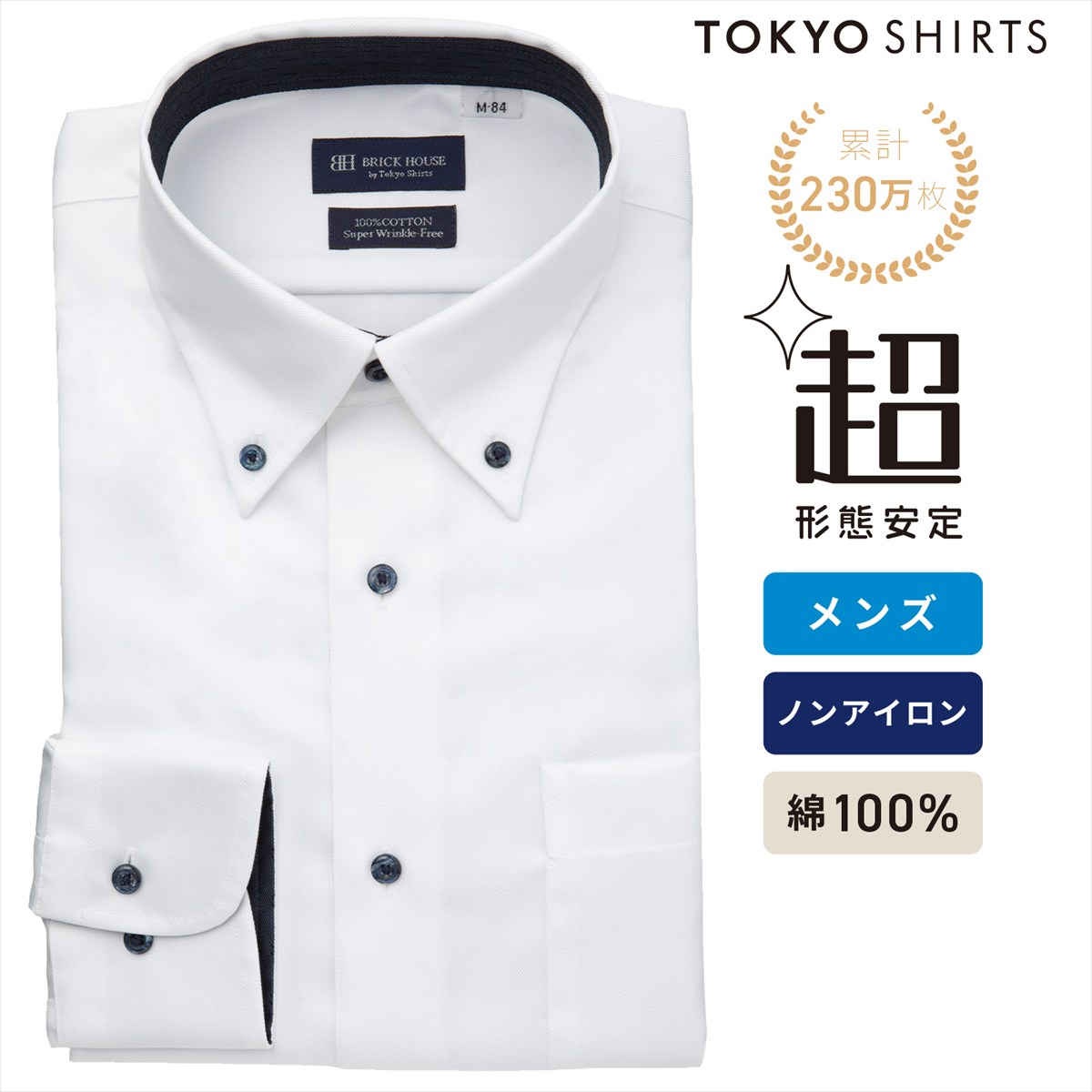 【公式】東京シャツ 【超形態安定】 ボタンダウン 長袖 形態安定 綿100% ワイシャツ