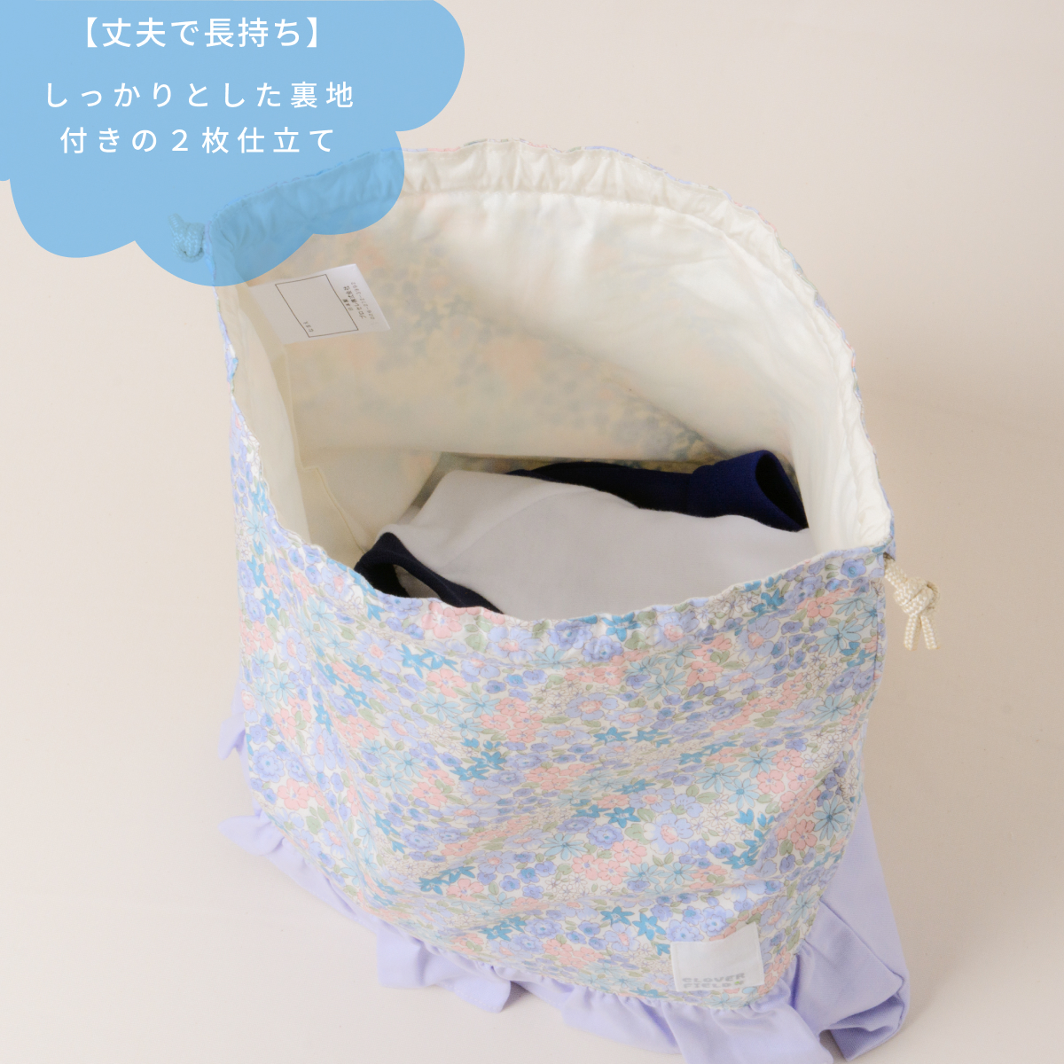 フリルが可愛い♪大きめな体操着入れCOTTON100% 日本製 【巾着袋 (大)】 |