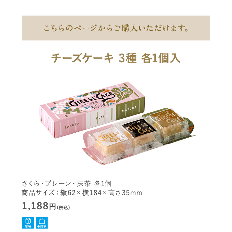 商品名:チーズケーキ 3種 各1個入(さくら・プレーン・抹茶)