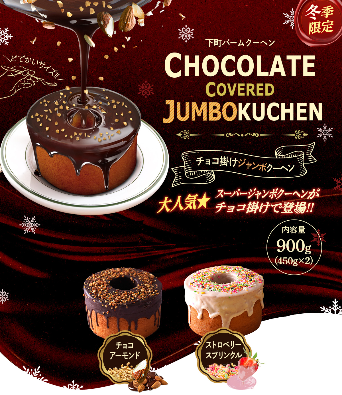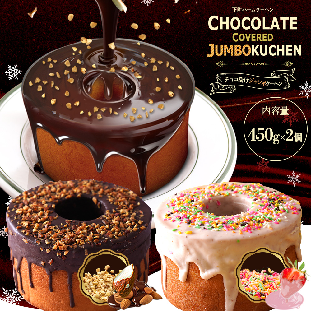 チョコがけスーパージャンボクーヘン2個 450g×2 チョコアーモンド ストロベリースプリンクル バームクーヘン ギフト 送料無料 プレゼント ポイント利用