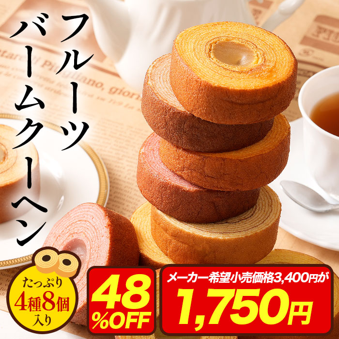 (メーカー希望小売価格48%OFF) フルーツバーム8個 フルーツ バウムクーヘン お菓子 スイーツ ポイント 消化 送料無料 サンプル M
