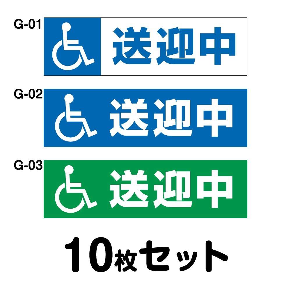 車椅子マーク 送迎中 10枚セット W350mm×H100mm G-01/G-02/G-03 身体障害者 車 国際シンボルマーク 交通安全 高齢者 車いす 介護 福祉 送迎車 四角 幅30cm