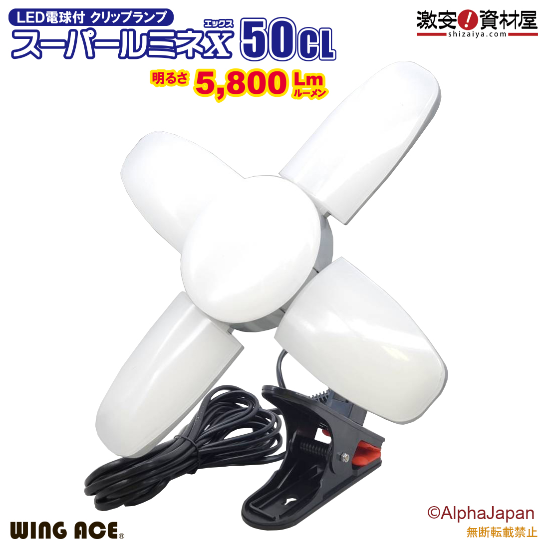 50W LED電球付屋内用クリップランプ スーパールミネX50CL SLX-50CL