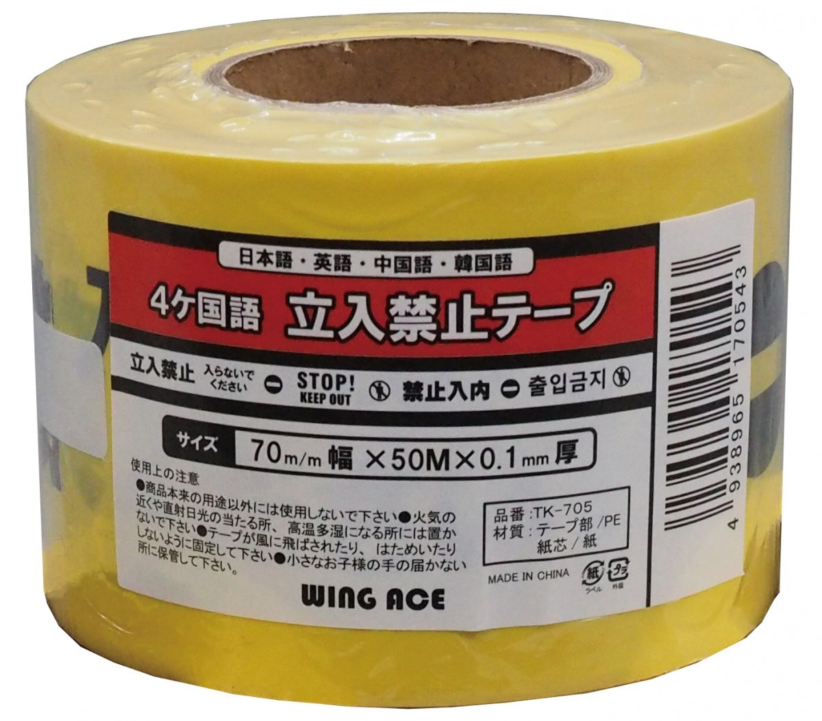 立入禁止テープ 4ヶ国語 70mm幅×50m×0.1mm厚 TK-705