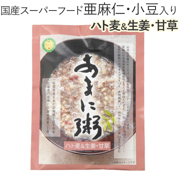 ●スーパーフード「亜麻仁(あまに)」と「小豆」に「国産のハト麦・生姜・甘草」を加えた玄米粥原料全てが国産の亜麻仁と、穀物と豆等の植物由来のみ。海水塩以外は無添加です。